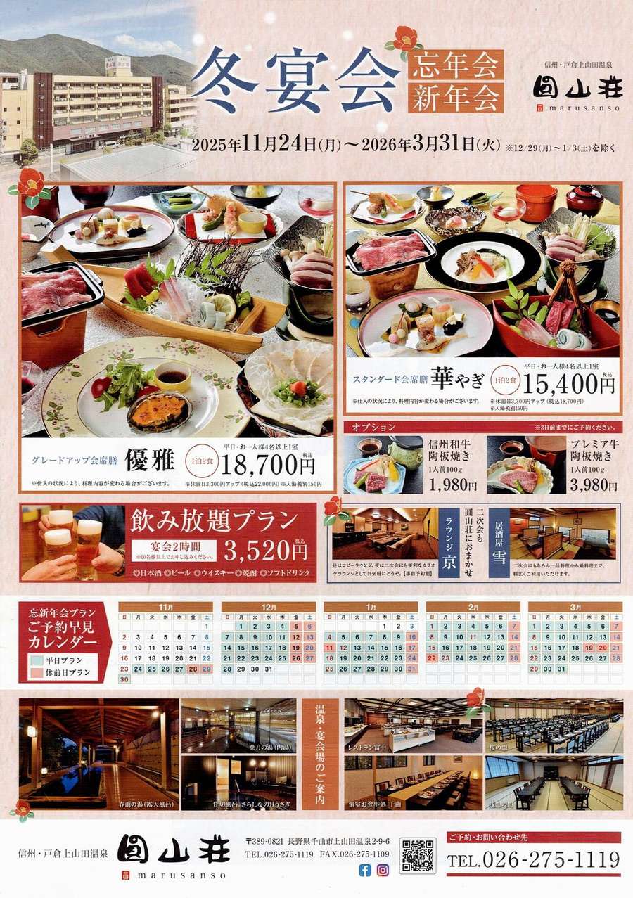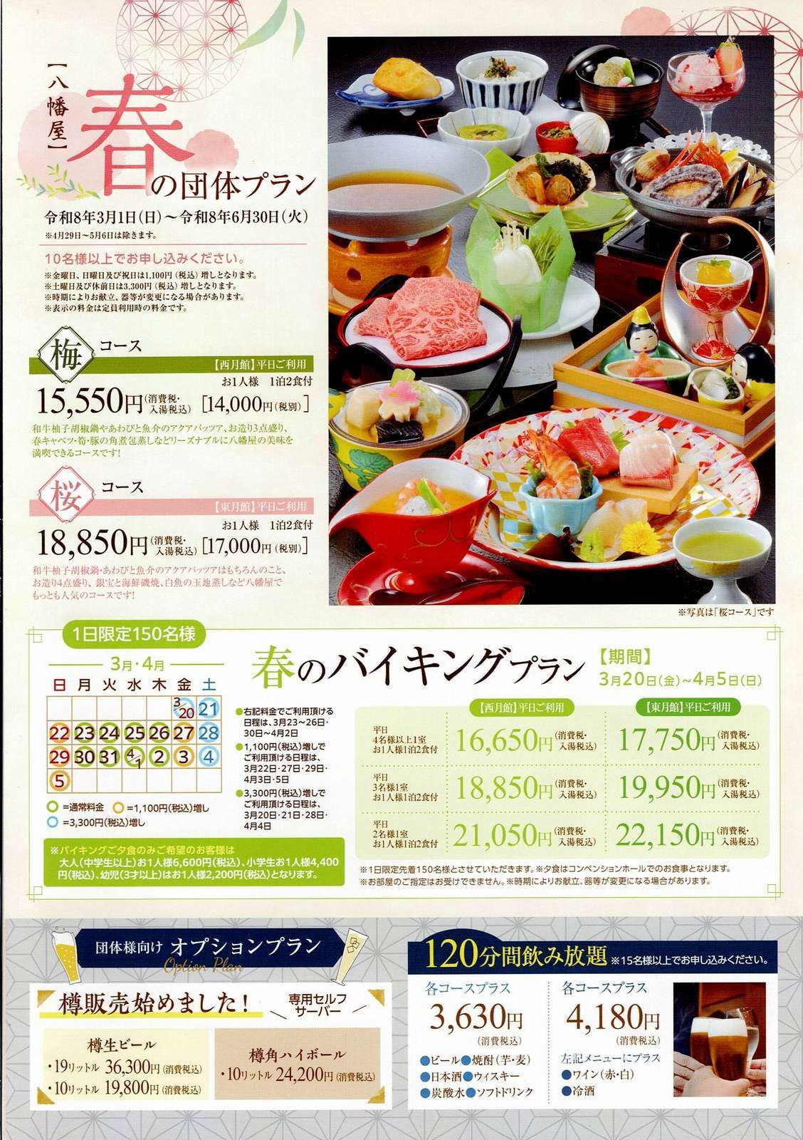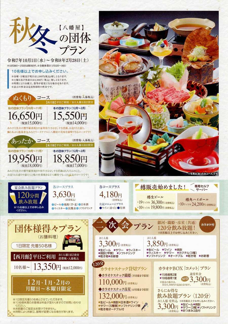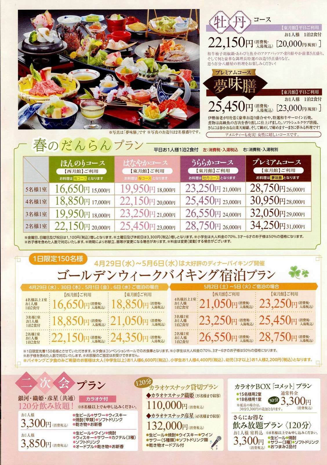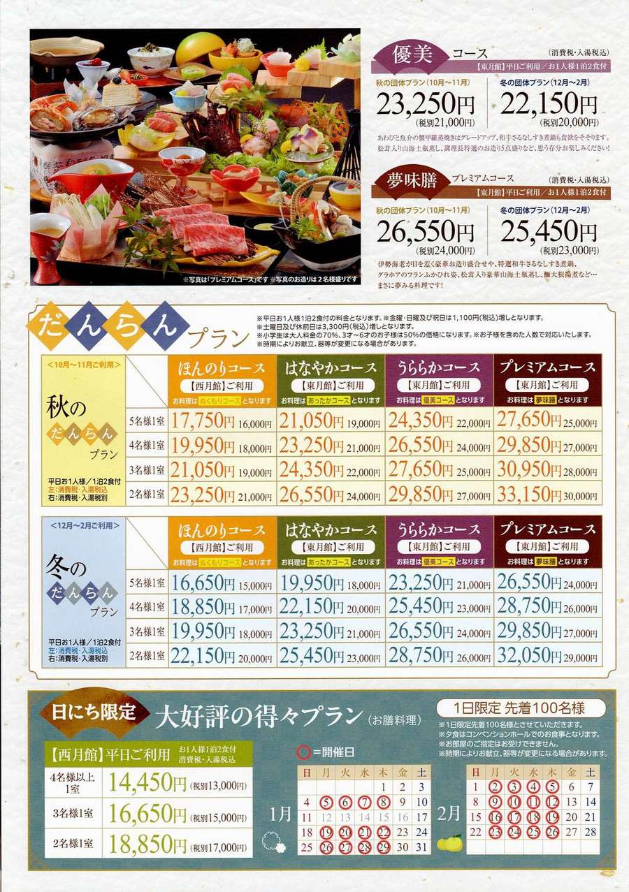 ※ 宿への直接お申し込みの場合、下記料金及び特典の適用はいたしません。